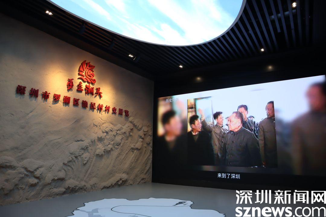 跟著直播鏡頭走過長達350米,共擁有28幅墻面浮雕的文化長廊,便是漁民村村史館的入口,步入村史館內,便是序廳,腳下是一副羅湖區(qū)地圖,大屏幕上,播放著8分鐘的《乘風破浪再啟航》漁民村紀實片,全面展示了在中國共產(chǎn)黨領導下漁民村的發(fā)展歷程。