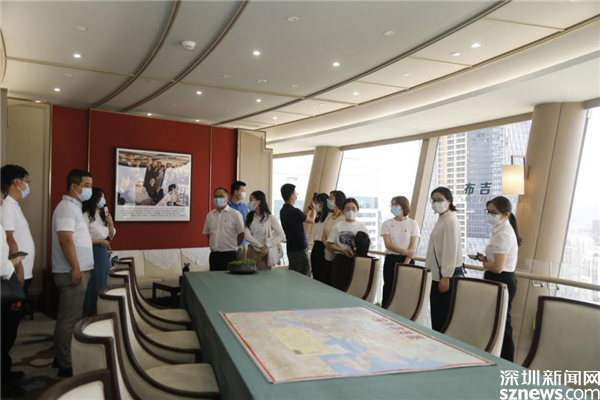 “不到國貿(mào),不算來過深圳?!眹Q(mào)是深圳的一個時代記憶,國貿(mào)大廈見證了深圳改革開放的輝煌詩篇。全體黨員干部跟隨著講解員的生動講解,透過檔案、文物、老照片等展品,以視頻、音頻等方式“沉浸式”學習,傾聽歲月回響,重溫奮斗征程,切身體會國貿(mào)大廈建設過程中創(chuàng)造“三天一層樓”的“深圳速度”。隨后,黨員干部來到旋轉(zhuǎn)餐廳鄧公廳,重溫鄧小平同志關于改革開放的重要思想。