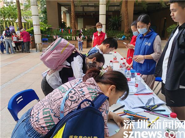 活動吸引了小區(qū)許多居民群眾熱情參與,各項目點在工作人員和義工的引導下都有秩序地排起隊伍參加游戲環(huán)節(jié)。在“黨史知識化身謎語”區(qū),只見顏色各異的謎語條迎風飄揚著,讓人忍不住好奇停下腳步,紛紛對著謎語認真地思考起來,確認好答案后再將謎語條取下,到工作人員處核對獲取小印章。