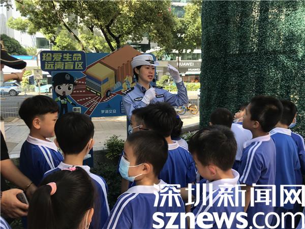 結(jié)束警營的參觀,羅湖交警組織學(xué)生們前往東門社區(qū)交通安全主題公園開展交通安全教育。在民警的引導(dǎo)下,同學(xué)們被趣味游戲所吸引,在模擬機(jī)動車道玩起了“交通安全齊步走”,在交通標(biāo)識轉(zhuǎn)轉(zhuǎn)墻前認(rèn)識各類交通標(biāo)識,在大車盲區(qū)警示等設(shè)施裝置中進(jìn)行沉浸式體驗。