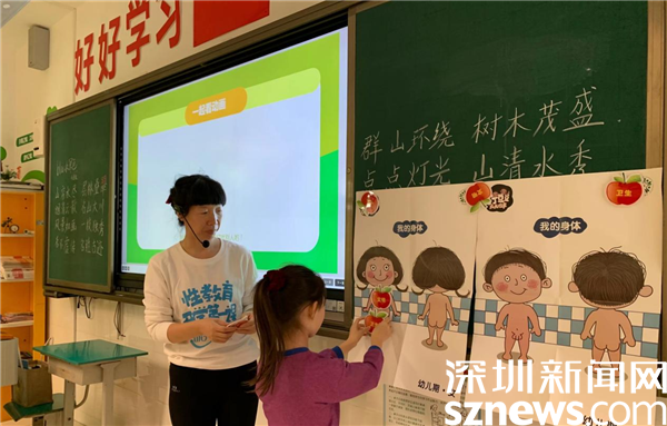 課程開始前,小朋友們都對“我從哪里來”有各式各樣的回答,大多數(shù)回答是:“從媽媽的肚子里蹦出來的”“垃圾堆里撿來的”“充話費送的”……課上,老師詳細講述了精子和卵子怎樣相遇、受精卵是怎樣在媽媽的子宮中發(fā)育變化,最后小小的人兒是如何娩出母體等,同時也講解了男孩和女孩的身體差異,進入青春期后的身體特征變化。通過游戲互動,讓孩子們了解每個人的身體界限,認識身體的隱私部位,如何保護自己以及尊重他人。