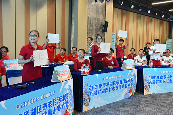 讀特客戶端·深圳新聞網(wǎng)2021年11月19日訊(記者 邱婕 通訊員 涂亮亮)11月19日下午,首屆羅湖區(qū)長者健康素養(yǎng)大賽在翠竹街道金展珠寶廣場舉行。本次活動(dòng)是由羅湖區(qū)衛(wèi)生健康局、羅湖區(qū)翠竹街道辦事處主辦,羅湖區(qū)老年人協(xié)會、羅湖區(qū)老年人體育協(xié)會、羅湖區(qū)離退休女干部聯(lián)誼會、羅湖區(qū)各街道老年人協(xié)會等單位承辦的2021羅湖區(qū)敬老月系列活動(dòng)之一,深圳市衛(wèi)生健康委老齡健康處二級調(diào)研員許月琴、羅湖區(qū)衛(wèi)生健康局二級調(diào)研員劉嶺、羅湖區(qū)疾控中心主任陳偉紅和翠竹街道辦事處四級調(diào)研員黃錦方參加了本次活動(dòng)。