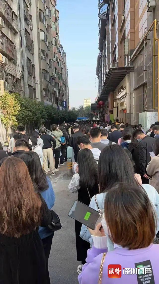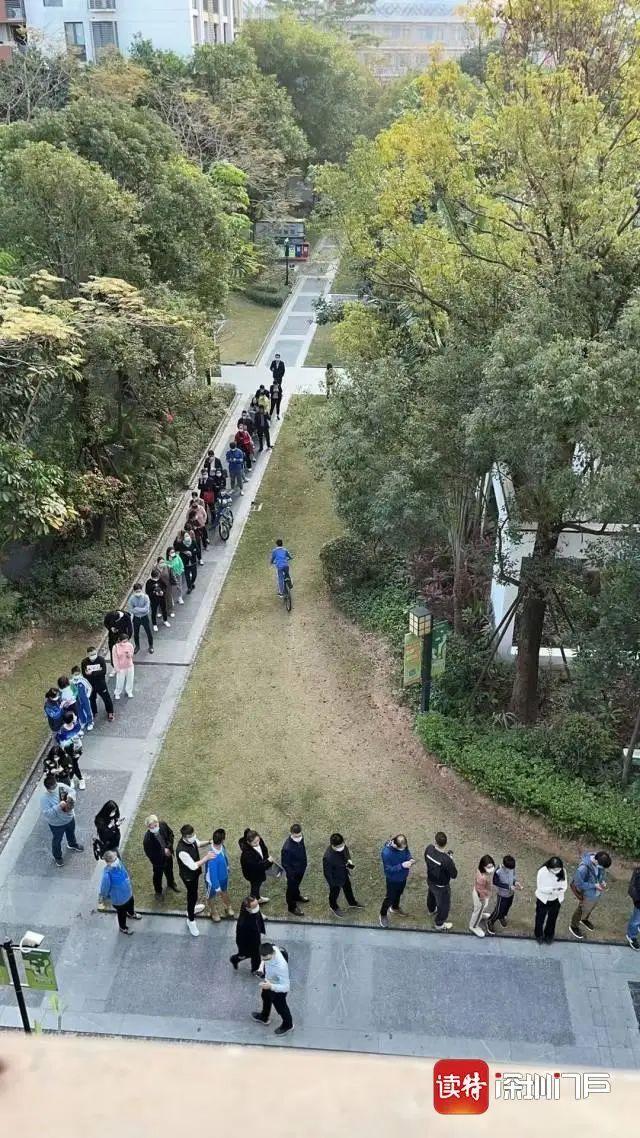 ▲坂田星河銀湖谷樓下也排起長長的核酸檢測隊伍,除了本地居民,人群里還有附近工地的建筑行業(yè)從業(yè)者、外賣小哥等。