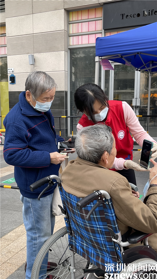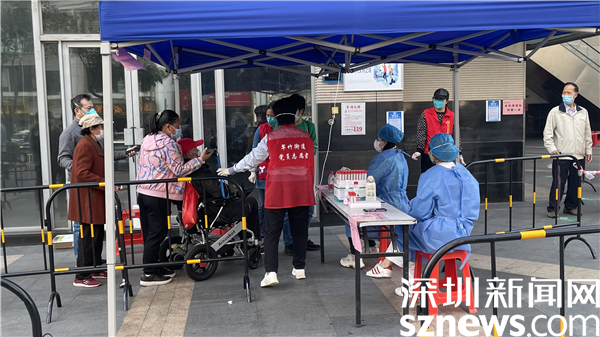 在翠竹街道金翠園核酸檢測(cè)點(diǎn),記者在現(xiàn)場(chǎng)看到核酸檢測(cè)隊(duì)伍共分成兩條隊(duì)伍,居民正按照地面劃好的“一米線(xiàn)”排隊(duì),身穿紅馬甲的社區(qū)工作人員與醫(yī)護(hù)人員正有條不紊地進(jìn)行核酸采樣工作,詢(xún)問(wèn)、登記、采樣......在羅湖的街頭,除了秩序井然的核酸檢測(cè),溫暖的故事也在悄然發(fā)生著。