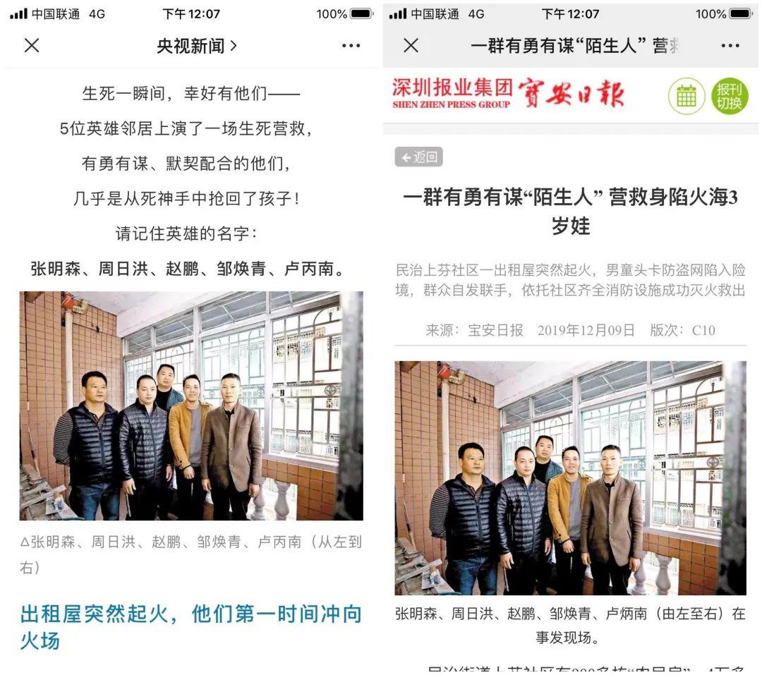 2019年12月3日,龍華區(qū)一處住宅突發(fā)大火,一名3歲幼童懸空在4樓的防盜網(wǎng)進退不得。生死一瞬間,幸好有一群有勇有謀的“陌生人”,上演了一場生死營救,合力救被困火場小孩(點擊回顧詳情)。