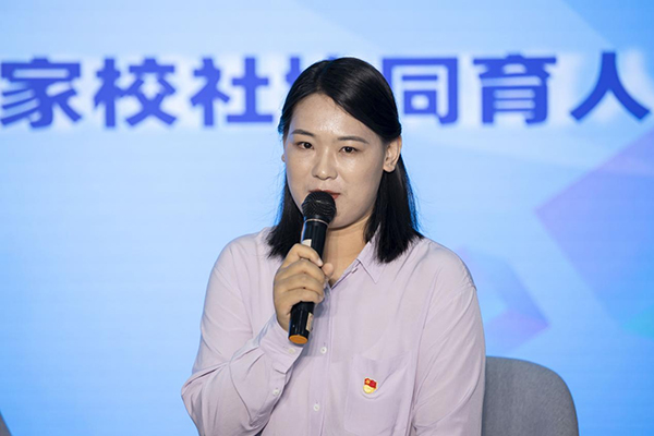 社區(qū)代表大望社區(qū)黨委書(shū)記高桂秀向大家分享了她致力于“家校社協(xié)同育人”的初心以及大望社區(qū)的相關(guān)探索,大望社區(qū)孩子及其家庭人數(shù)占社區(qū)的70%以上,且大部分無(wú)異于“留守未成年人”和困境未成年人。大望社區(qū)抓住轄區(qū)內(nèi)家庭教育的痛點(diǎn)與堵點(diǎn),通過(guò)貫徹社區(qū)“大黨委”理念、建立定期聯(lián)系的聯(lián)席工作例會(huì)制度、充分利用轄區(qū)優(yōu)勢(shì)資源,成立家長(zhǎng)黨員志愿者服務(wù)隊(duì)等多措并舉,多方聯(lián)動(dòng),形成家庭主體、學(xué)校主導(dǎo)、社區(qū)參與的育人網(wǎng)絡(luò)。以社區(qū)黨委為突破點(diǎn),融合一體,聚合成銜接有效、資源共享、活動(dòng)共商、項(xiàng)目共育、互促共榮的動(dòng)態(tài)雙向互動(dòng)協(xié)同育人共同體,構(gòu)建大望特色的‘家校社’協(xié)同育人的新模式,交出一份人民滿(mǎn)意的答卷。