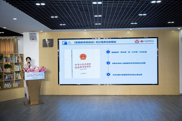 沙龍伊始,羅湖區(qū)人民法院民一庭(家事庭)副庭長(zhǎng)欒媛帶來(lái)《〈家庭教育促進(jìn)法〉解讀》的專(zhuān)題講座,闡明《家庭教育促進(jìn)法》的意義,明晰家長(zhǎng)“兩不得”“三不能”的行為紅線(xiàn),并針對(duì)當(dāng)下大多家庭教育存在生而不養(yǎng)、養(yǎng)而不教等突出問(wèn)題進(jìn)行剖析,結(jié)合工作歷程中生動(dòng)形象的案例,讓許多家長(zhǎng)明確了法律的要求。同時(shí),欒法官也為家長(zhǎng)們提出了實(shí)用科學(xué)的家庭教育內(nèi)容和方法,也對(duì)家校社協(xié)同育人機(jī)制發(fā)表了自己的想法。