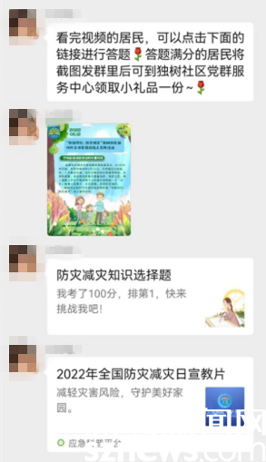 疫情防控期間,不宜開展人群聚集活動,但事關(guān)社區(qū)居民的公益講座卻不能停滯。對此,獨(dú)樹社區(qū)創(chuàng)新開展“云課堂”,通過線上視頻課程講解、線上互動、有獎競答等多種形式開展,讓居民群眾足不出戶就能學(xué)習(xí)防災(zāi)減災(zāi)相關(guān)知識。