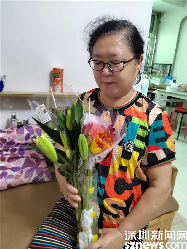在活動過程中,11位組員都收到了一束鮮花,是社工利用空余時間,捧著花送到每位組員家中的。社工用鮮花敲開組員的家門,這就仿佛是一次家訪,收到花的組員開心地與社工合影?;ㄩ_的時候,不少組員都拍下來發(fā)在群里,讓快樂與美好的氣氛在群里彌漫。組員袁春艷在微信群里說:“感謝人美心善的社工們,在工作異常忙碌的同時,不僅為我們精心準(zhǔn)備干貨滿滿、精彩絕倫的減壓課,還為我們送來鮮花的芬芳!讓我日常雜亂的家變得美麗精致、花香彌散、情趣高雅!真的有太多向您學(xué)習(xí)的地方!愛您!”