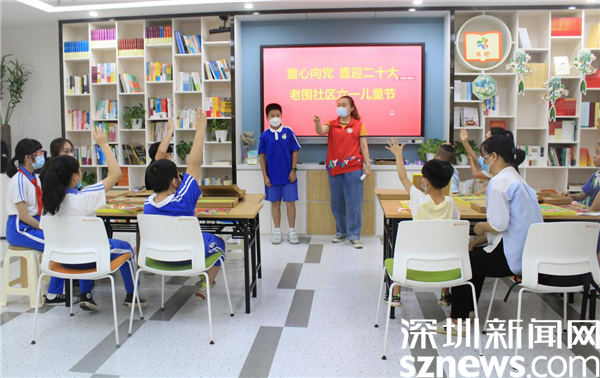 讀特客戶端·深圳新聞網(wǎng)2022年6月1日訊(記者 劉嘉敏 通訊員 楊紀歐)在黨的二十大即將勝利召開之際,孩子們也迎來了自己的節(jié)日,一年一度的六一兒童節(jié)。近日,在羅湖區(qū)桂園街道老圍社區(qū)黨委的大力支持下,老圍社區(qū)黨群服務(wù)中心開展了“童心向黨,喜迎六一”活動,16名小朋友在社工的帶領(lǐng)下,認識“什么是黨的二十大”,并積極參與互動小游戲“我比你猜”,然后齊齊動手制作紅色紐扣畫,將愛黨愛國之情在心中播種。
