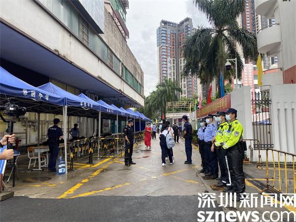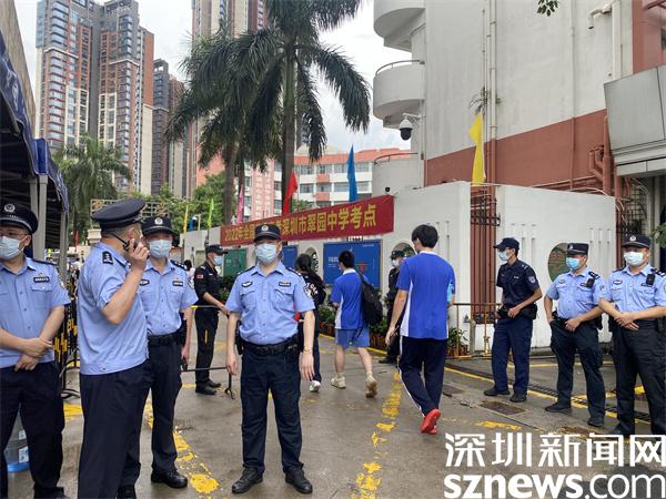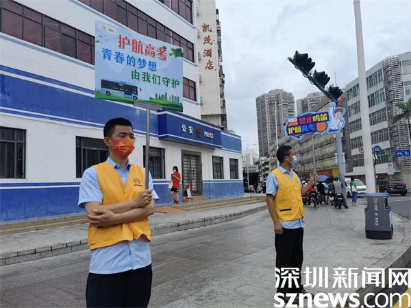 在各大考點(diǎn)門口,公安部門和交警大隊(duì)維護(hù)考點(diǎn)周邊道路交通秩序,在考場(chǎng)周邊設(shè)立交警護(hù)航服務(wù)點(diǎn),派駐專項(xiàng)“高考服務(wù)車”為考生及家長(zhǎng)服務(wù)。為做好高考期間道路交通安全保障服務(wù)和疫情防控工作,確保高考生平安順暢抵達(dá)考場(chǎng),羅湖交警大隊(duì)通過強(qiáng)化全警上路管控、調(diào)整考場(chǎng)交通信號(hào)配時(shí)、嚴(yán)查亂鳴喇叭等多項(xiàng)措施助力高考順利進(jìn)行。