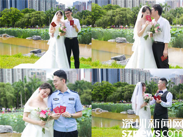 讀特客戶端·深圳新聞網(wǎng)2022年6月17日訊(記者 李慧 通訊員 楊嘉雯)6月中旬的洪湖公園,荷花盛開,17日早上,羅湖區(qū)民政局把婚姻登記頒證廳搬到這優(yōu)美環(huán)境、文明的氛圍中,舉辦“新時(shí)代心羅湖,荷創(chuàng)文明新婚俗”婚禮登記集體頒證儀式?,F(xiàn)場以并蒂蓮為背景,以文明、時(shí)尚、簡約作為主題元素,提倡“重登記、強(qiáng)責(zé)任、崇節(jié)儉”的文明新婚俗。