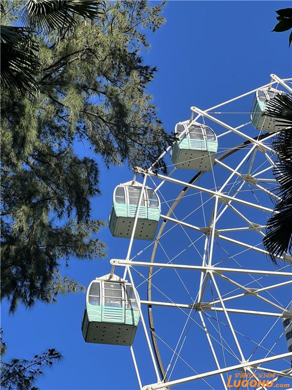 摩天輪藏在藍(lán)天綠樹(shù)間,顯得格外浪漫。
