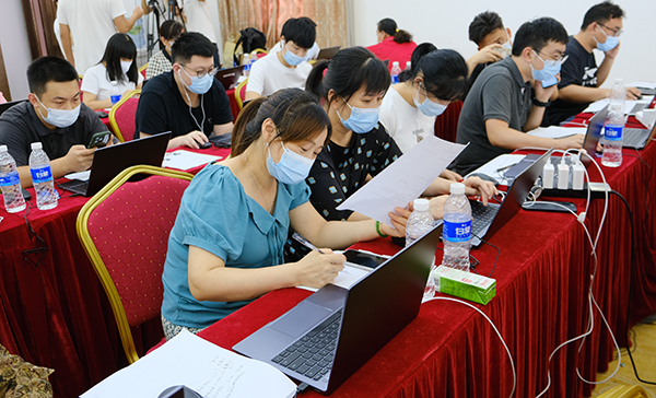 7月24日,雖然已經(jīng)是中午時分,但是在筍崗街道流調(diào)組的大會議室內(nèi),40多位來自羅湖區(qū)教育系統(tǒng)的工作人員仍爭分奪秒、馬不停蹄,以最快速度、最高精度對涉疫場所重點人員信息進行逐樓逐戶排查。流調(diào)組安排兩班人員白天黑夜連班倒,搶抓“黃金24小時”窗口期。
