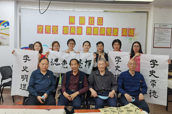 深圳市羅湖區(qū)清水河街道梅園社區(qū)黨委,借梅園社區(qū)長青老齡大學開班之際,組織梅園社區(qū)紅崗西村第十黨支部全體黨員于3月17日下午在梅園社區(qū)長青老齡大學開展了“學黨史、悟真諦,揮墨頌黨恩”活動。