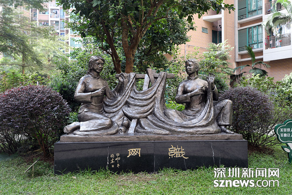 位于社區(qū)內的“織網(wǎng)”銅塑展示著漁民村改革開放前村民的生活日常