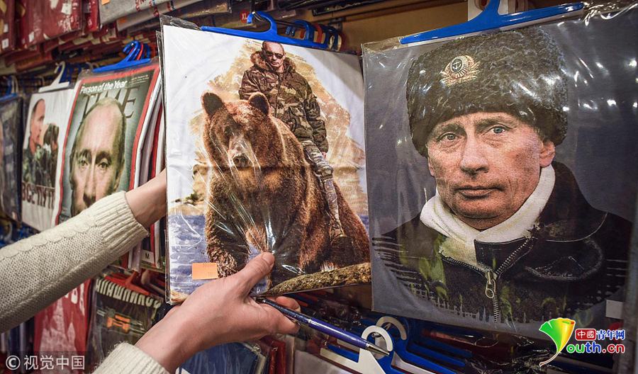 當(dāng)?shù)貢r間2018年3月13日,俄羅斯莫斯科,俄羅斯大選將于3月18日舉行,大選主題紀念品熱賣。