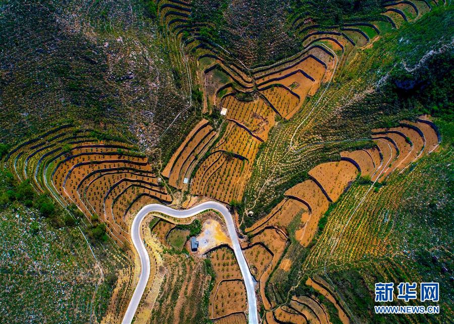 這是5月6日無(wú)人機(jī)拍攝的涉縣關(guān)防鄉(xiāng)后池村梯田和公路。初夏時(shí)節(jié),河北省邯鄲市涉縣山間的梯田綠意盎然,猶如一幅幅美麗畫(huà)卷。新華社記者 王曉 攝
