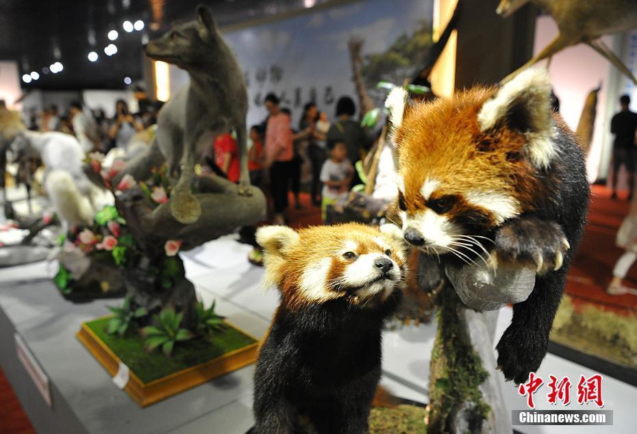 5月27日,各類飛禽走獸活靈活現(xiàn)地出現(xiàn)在民眾的眼前。正在福建博物院展出的第四屆中國動(dòng)物標(biāo)本大賽的257件惟妙惟肖的標(biāo)本作品集中對(duì)外開放,讓民眾如進(jìn)入“動(dòng)物世界”。本次大賽匯集了全國標(biāo)本制作企業(yè)、博物館、大專院校、研究所等60多家單位參加,標(biāo)本涵蓋哺乳類、鳥類、爬行類、兩棲類、魚類等動(dòng)物類群的皮張和骨骼標(biāo)本。主辦方希望通過標(biāo)本大賽,向公眾展現(xiàn)動(dòng)物世界的美麗,宣傳生物多樣性和生態(tài)文明,借鑒吸收國際標(biāo)本制作先進(jìn)經(jīng)驗(yàn),提高中國野生動(dòng)植物標(biāo)本制作的整體水平。圖為大賽參賽作品小熊貓。中新社記者 張斌 攝