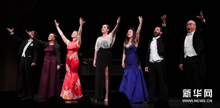 6月30日,在美國加利福尼亞州舊金山赫伯斯特劇院,著名華裔歌唱家田浩江(右一)和青年歌唱家們演唱《從茉莉花到圖蘭朵》。當(dāng)日,著名華裔歌唱家田浩江偕6位參加過iSING!國際青年歌唱家藝術(shù)節(jié)的歌唱家舉辦“田浩江舊金山演唱會(huì)”。iSING!國際青年歌唱家藝術(shù)節(jié)創(chuàng)辦于2011年,集教育、訓(xùn)練和演出于一體,為全球青年歌者提供學(xué)習(xí)和實(shí)踐的機(jī)會(huì)。在本場(chǎng)演唱會(huì)上,來自不同國家的藝術(shù)家們演唱中外經(jīng)典歌曲,為觀眾獻(xiàn)上一臺(tái)中西文化交融的聽覺盛宴。新華社記者吳曉凌攝