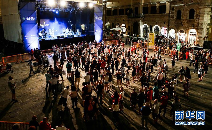 7月13日,在意大利佩魯賈,觀眾在翁布里亞爵士音樂(lè)節(jié)上觀看樂(lè)手演出。翁布里亞爵士音樂(lè)節(jié)于7月13日在翁布里亞大區(qū)山城佩魯賈開幕,將持續(xù)至22日。今年是該音樂(lè)節(jié)舉辦的第45周年。期間,中部山地古城的酒吧餐廳、青石板路和大小劇院都成為樂(lè)手的舞臺(tái)和觀眾欣賞音樂(lè)的福地。新華社記者金宇攝