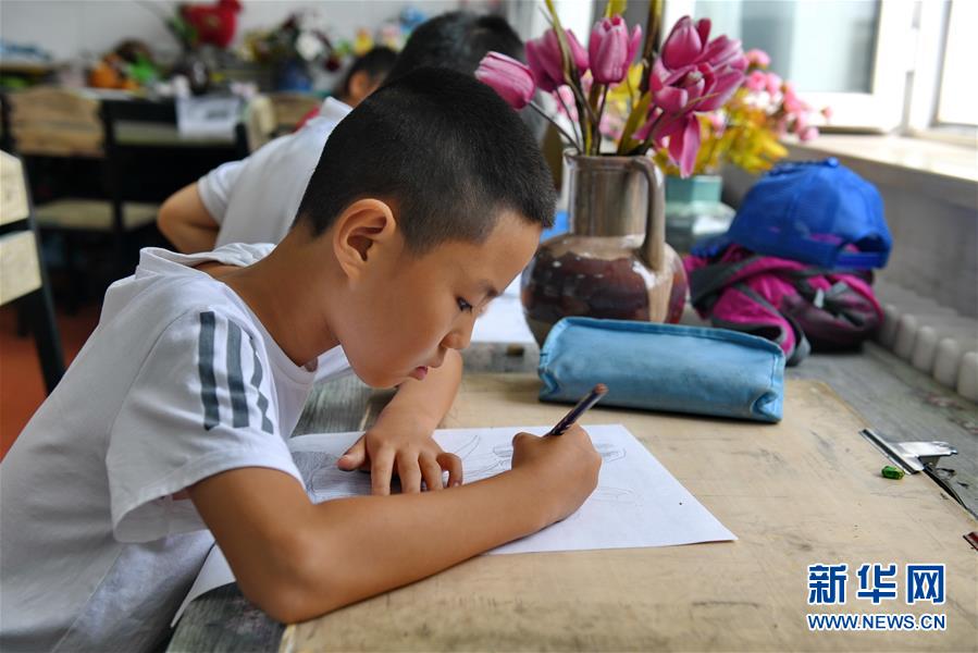 7月16日,在長春市少年宮,學(xué)生在進(jìn)行繪畫練習(xí)。