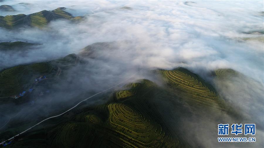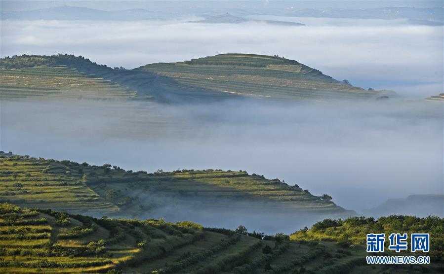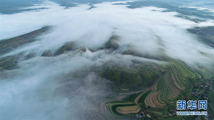 寧夏彭陽:最美旱作梯田 云海宛如仙境