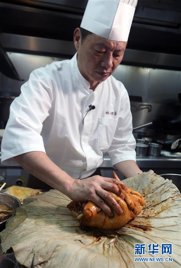 杭州酒家老板吳瑞康現(xiàn)場(chǎng)制作本店招牌菜“叫化雞”(6月16日攝)。 金庸在武俠小說《神雕俠侶》中借郭靖之口說過: “為國(guó)為民,俠之大者?!蔽鋫b精神在香港備受推崇,有其心向中華文化的情感基礎(chǔ)。在這個(gè)國(guó)際美食之都,品味舌尖上的武俠味,內(nèi)中的感覺別有深意。新華社記者 李鵬 攝