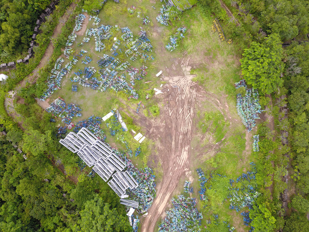 誰放的?尚未開放安托山公園山頂已變共享單車墳場引發(fā)猜測