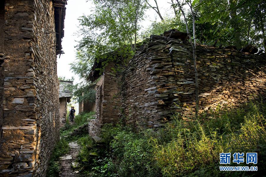 63歲的劉長鎖老人生于斯長于斯,整個村落僅他一人(8月7日攝)。他的孩子2014年搬進山下的新居。 新華社記者陶明攝