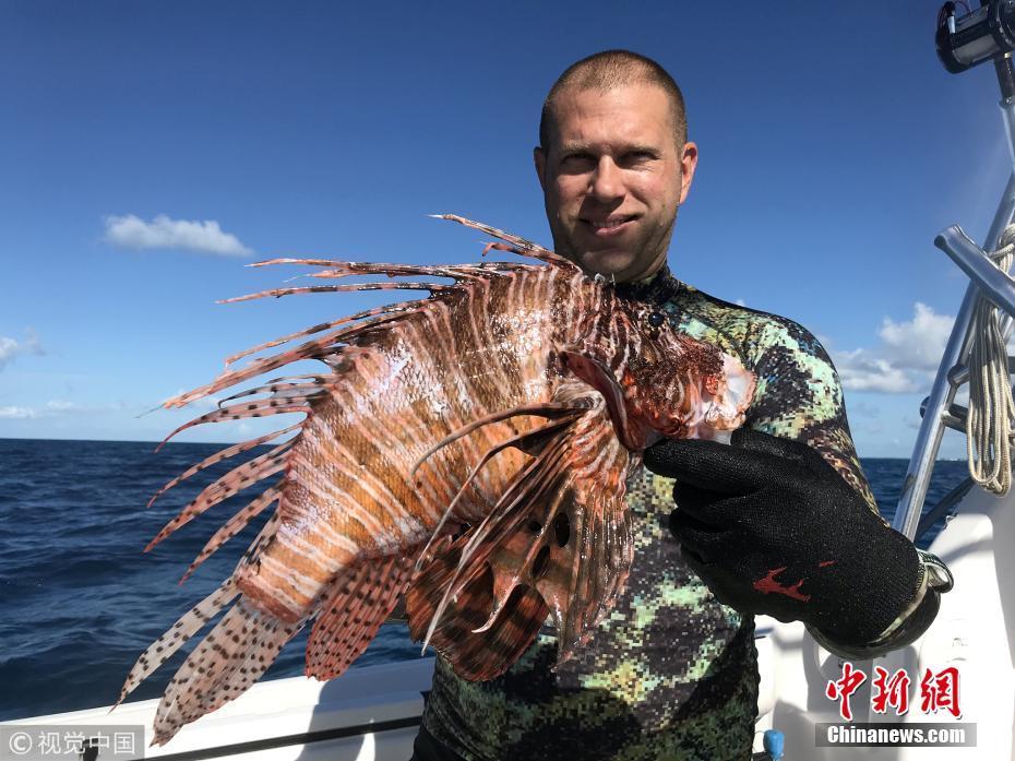 8月21日訊(具體拍攝時間不詳),近日,來自長島的Timothy Blasko打破了記錄,他捕獲了大西洋最重的獅子魚。37歲的Timothy Blasko是一名技術(shù)精湛的捕魚者,當天,他和朋友們在佛羅里達群島伊斯拉莫拉達海岸捕魚時,遇到了這條大魚。Timothy向朋友要來了魚叉,瞄準大魚的下方位置叉去,正中目標成功捕獲。當他們把這條魚和當天捕獲的其它魚排在一起時,他們猜測這條魚可能會破紀錄?!八喼笔仟{子魚中的哥斯拉!” Timothy描述道,“這條巨大的獅子魚重達3.1磅,刷新了大西洋迄今最重獅子魚的國家紀錄?!眻D片來源:視覺中國