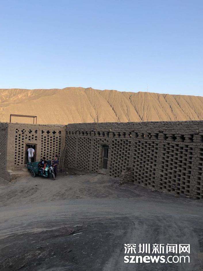 ??? ?在葡萄溝,隨處都可見到土磚砌成的鏤空方格子土屋,構成了當?shù)匾坏廓毺氐娘L景,原來這是專門用來晾葡萄干的場地。 趙春麗攝