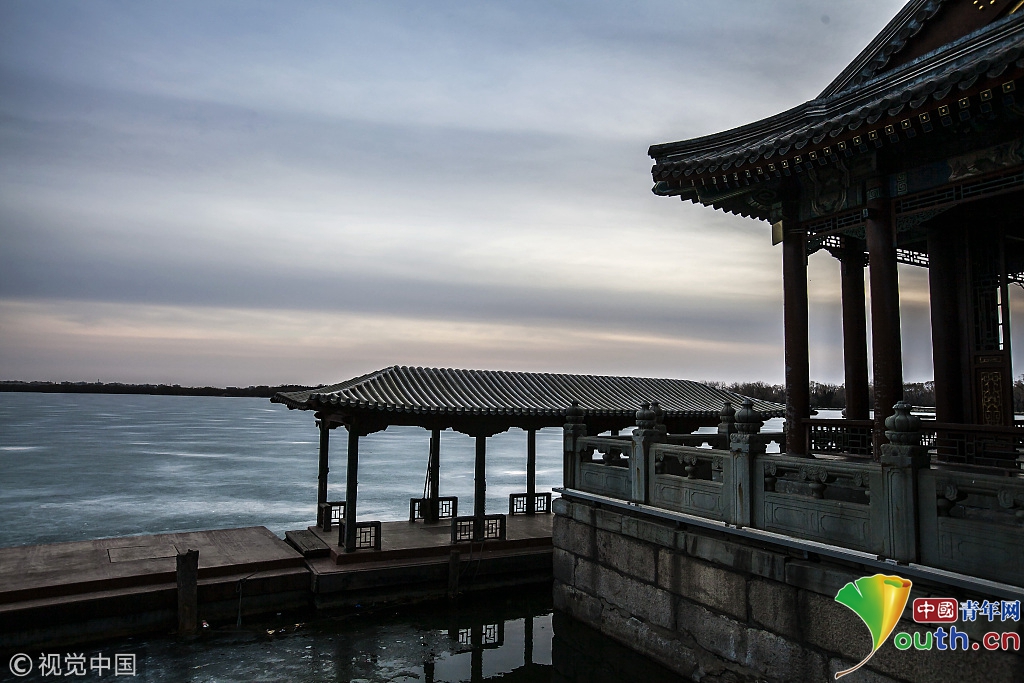 2018年2月23日,北京頤和園。當(dāng)天日落時(shí)分昆明湖上空出現(xiàn)夕陽余暉的美景,夢幻般的色彩將古老的皇家園林裝扮得美輪美奐,讓人流連忘返。