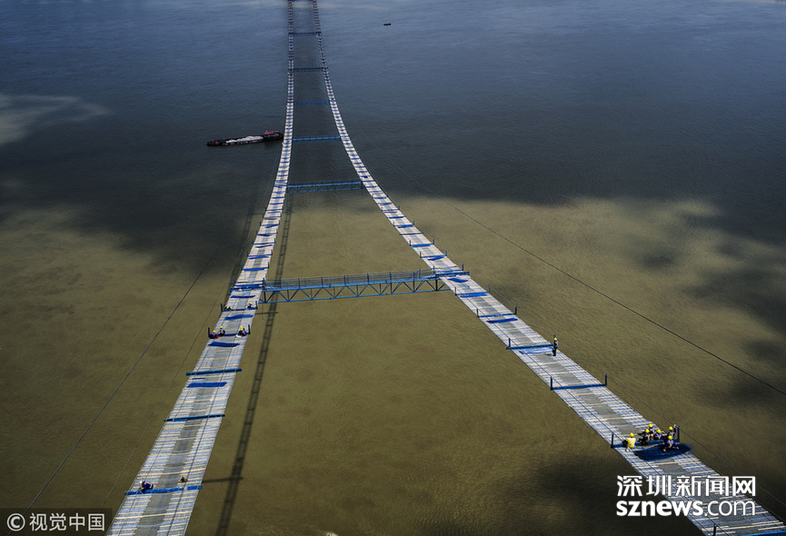 貓道是懸索橋施工時架設在主纜之下、平行于主纜的線形臨時施工便道,是主纜系統(tǒng)乃至懸索橋整個上部結構的施工高空腳手架平臺,作為極其重要的臨時施工設施,大橋竣工后被拆除。