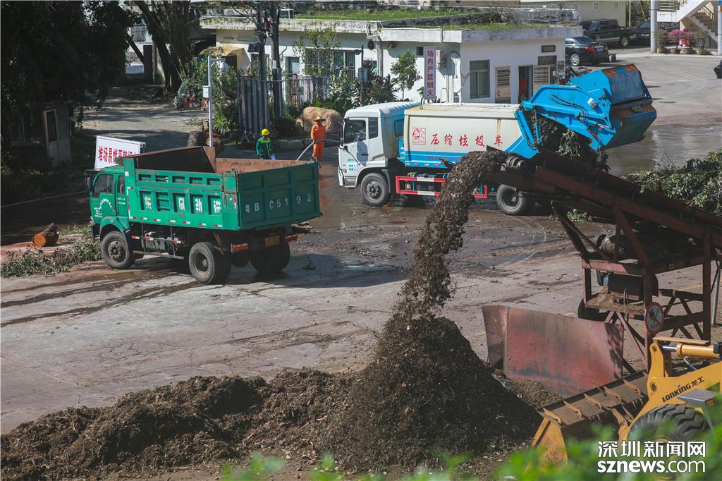 據(jù)了解,9月15日臺風到來前,組織運營單位深圳鐵漢生態(tài)公司對全場車間及工人宿舍進行加固,機器設(shè)備進行維護保養(yǎng),騰出場地準備接收被臺風刮斷送來的樹枝。16日臺風來時,敞開大門接收樹枝,用LED廣告牌發(fā)布通知,優(yōu)先接收綠化處管養(yǎng)的深南、北環(huán)、濱河、濱海、南坪快速等主干道樹枝。