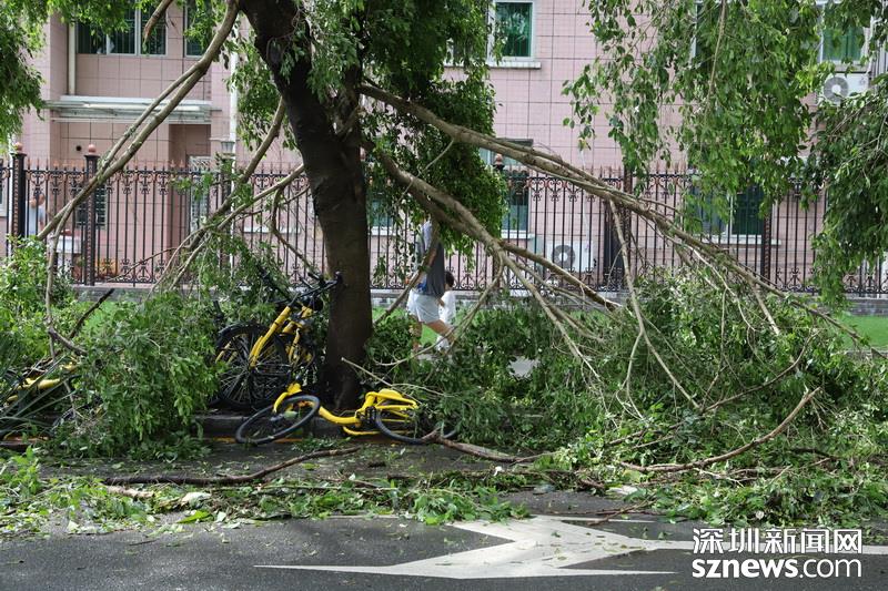 2018年9月17日10點(diǎn)16分,商報(bào)路,一對(duì)父子走過(guò)倒塌的樹(shù)木旁邊。(攝影:楊浩翰)