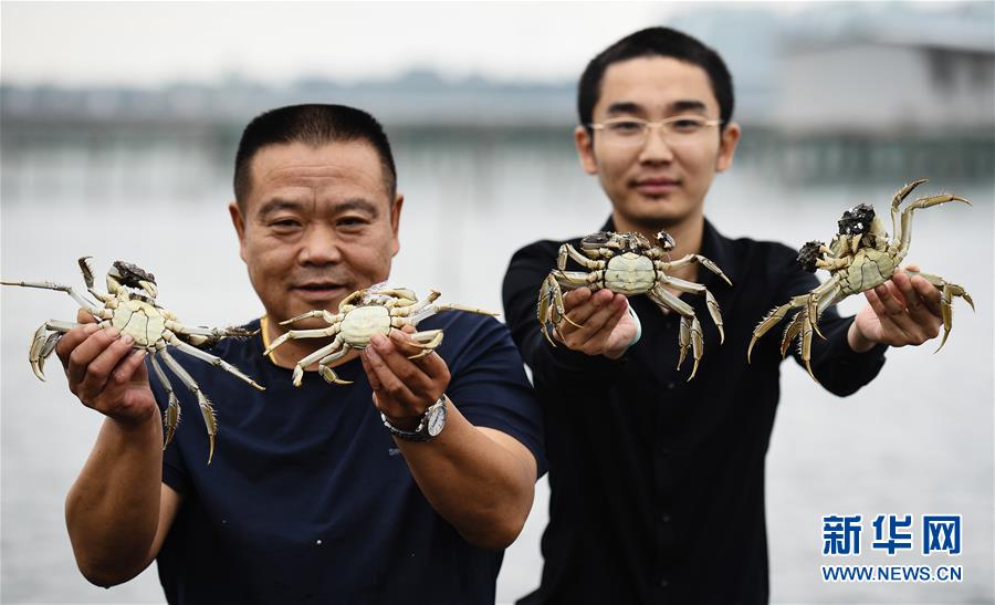 9月21日,蟹農(nóng)展示剛捕撈到的陽(yáng)澄湖大閘蟹。