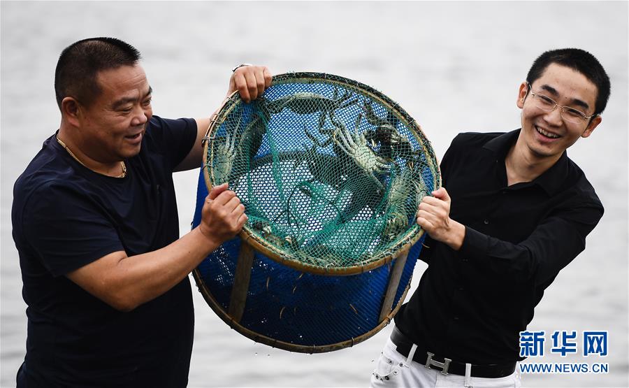 9月21日,蟹農(nóng)展示剛捕撈到的陽(yáng)澄湖大閘蟹。新華社記者李響攝