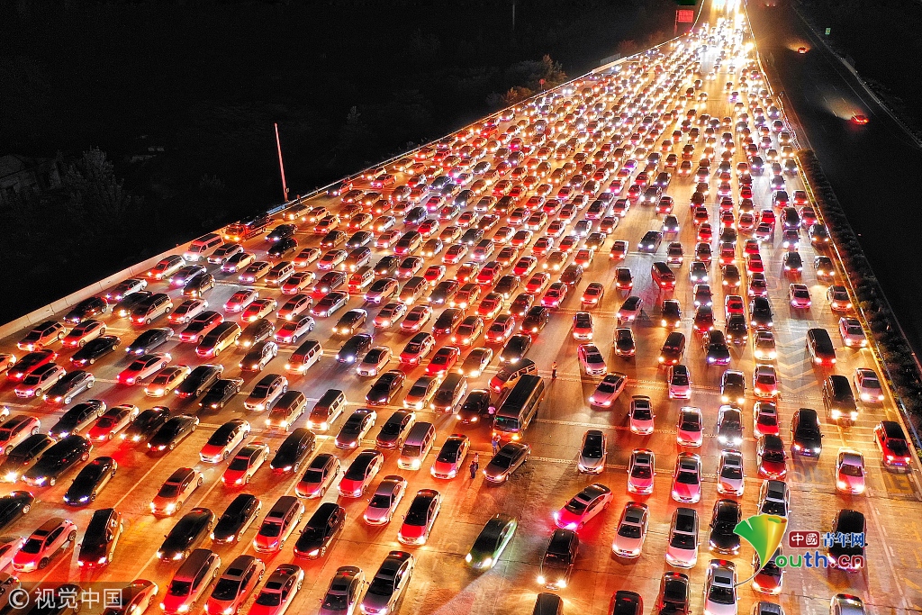航拍鄭州中秋返程高峰 堵車(chē)數(shù)公里宛 ...