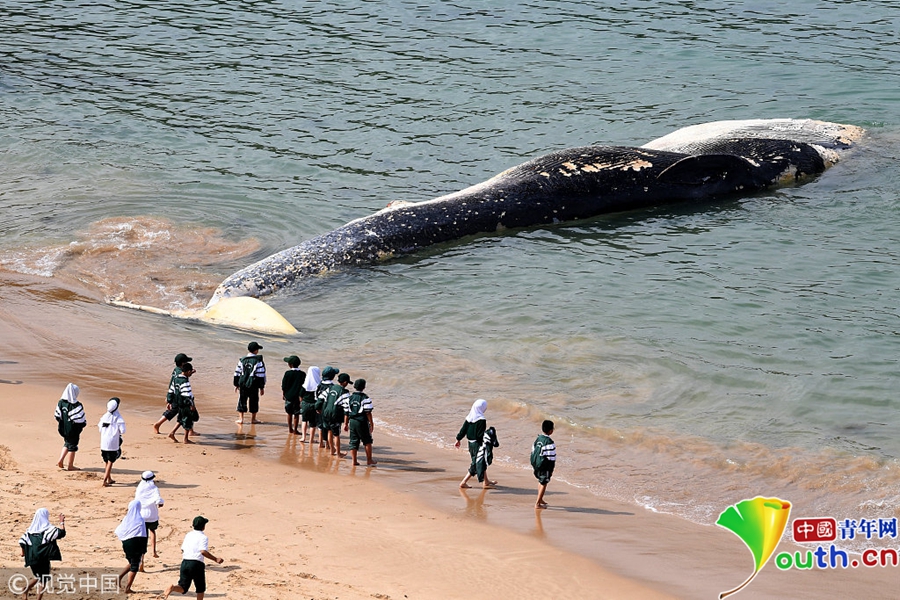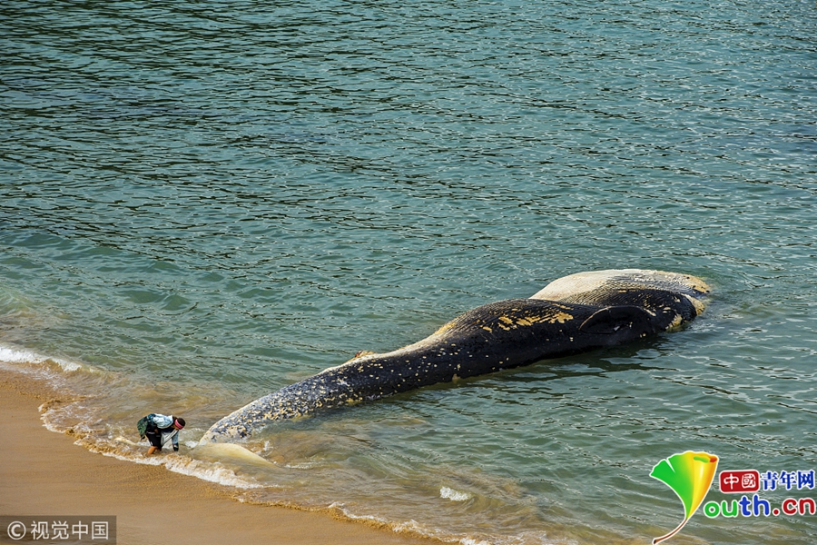 一頭稀有的大須鯨的尸體被沖上當(dāng)?shù)睾?/p>