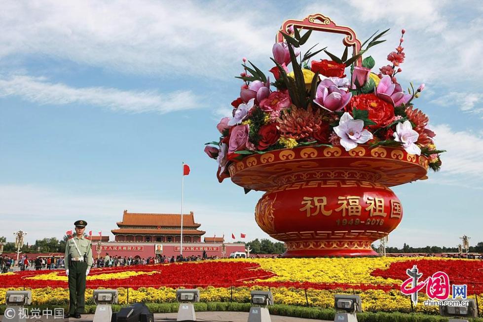 “祝福祖國(guó)”花籃連續(xù)八年綻放天安門廣場(chǎng) 獻(xiàn)禮國(guó)慶