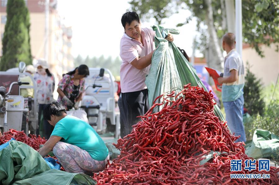 9月16日,阜城縣王集鄉(xiāng)南張莊村農(nóng)民在整理收獲的辣椒。近年來,河北省阜城縣王集鄉(xiāng)在推進(jìn)產(chǎn)業(yè)富民過程中,積極引導(dǎo)農(nóng)民調(diào)整農(nóng)業(yè)產(chǎn)業(yè)結(jié)構(gòu),按照品種特色化、種植規(guī)模化、產(chǎn)銷一體化的“公司+基地+農(nóng)戶”的經(jīng)營模式,鼓勵(lì)農(nóng)民發(fā)展特色辣椒種植,推行“訂單種植”模式,開辟出了一條農(nóng)民創(chuàng)收新路徑。目前,阜城縣王集鄉(xiāng)辣椒種植面積3100余畝,每畝年收益2500元以上,帶動(dòng)當(dāng)?shù)剞r(nóng)民實(shí)現(xiàn)增收。新華社記者朱旭東攝