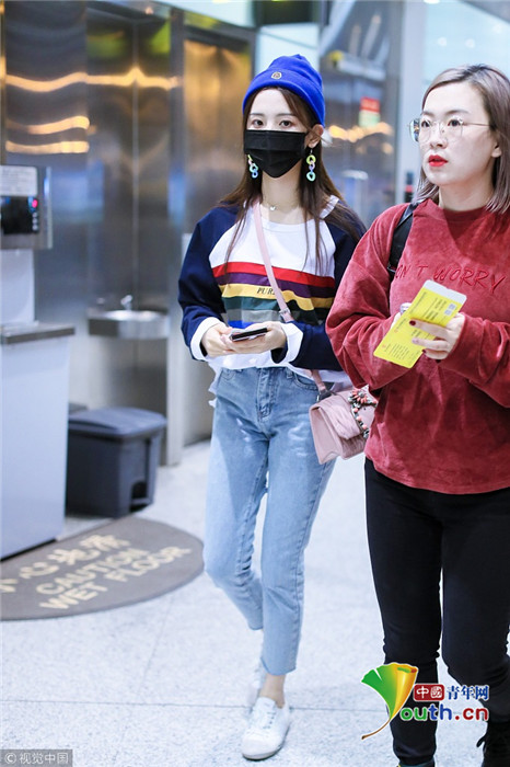 2018年9月25日,北京,“錦鯉少女”楊超越現(xiàn)身機(jī)場(chǎng),她身穿“彩虹裝”青春無敵,戴著糖果色耳環(huán),細(xì)節(jié)處可愛吸睛。