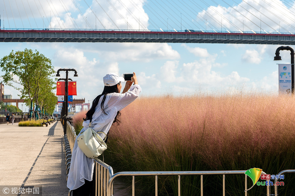 上海楊浦濱江粉黛亂子草成片盛開(kāi) 美不勝收