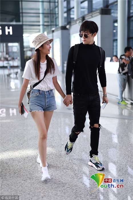 2018年9月26日,上海,穎兒、付辛博夫婦亮相機場。穎兒身穿白T恤和牛仔短褲露出纖細美腿十分養(yǎng)眼,一路挽著老公的手十分恩愛甜蜜,日前,穎兒還在節(jié)目上痛哭述說自己與付辛博新婚相處的苦楚。