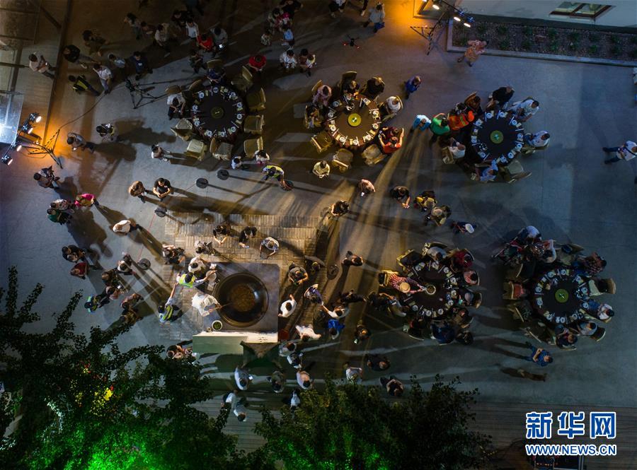 9月30日,中外游客入席品嘗“江鮮第一鍋”(無人機(jī)拍攝)。當(dāng)日,浙江省杭州市富陽區(qū)場(chǎng)口鎮(zhèn)東梓關(guān)村開啟“江鮮第一鍋”,幾位大廚聯(lián)手在直徑1.5米的大鍋內(nèi)烹制美味江鮮,這也是當(dāng)?shù)亍敖r大會(huì)”的重頭戲。東梓關(guān)村有著1000多年歷史,古就是富春江南岸重要的商貿(mào)集散地,素有富春江“東流第一關(guān)”之稱。隨著近年來美麗鄉(xiāng)村建設(shè)的推進(jìn),東梓關(guān)村著力打造粉墻黛瓦的江南民居,同時(shí)依托富春江豐富的江鮮魚類資源,在秋季舉辦特色“江鮮大會(huì)”,通過江鮮捕撈體驗(yàn)、江鮮第一鍋、百鮮宴、農(nóng)家菜大賽等活動(dòng),吸引各地游客前來感受富春江漁民豐收的喜悅和千年古村的獨(dú)特魅力,推動(dòng)鄉(xiāng)村特色旅游發(fā)展。新華社記者徐昱攝