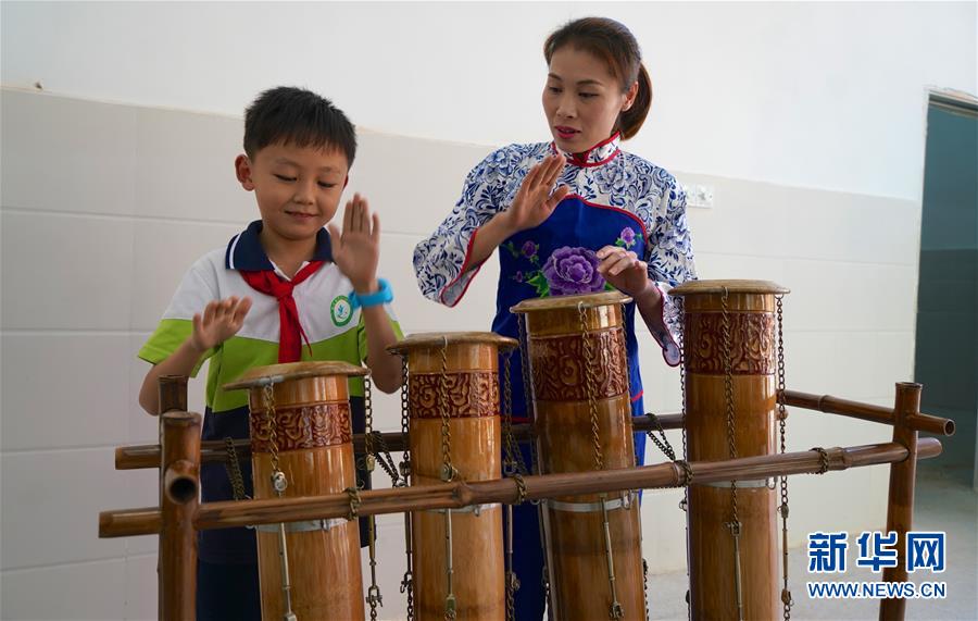 10月8日,崇義縣竹樂樂團(tuán)的演員在教學(xué)生演奏竹排琴。 近年來,江西省崇義縣思源實(shí)驗(yàn)學(xué)校定期開設(shè)竹樂課,邀請崇義縣竹樂樂團(tuán)的演員教授學(xué)生演奏竹排琴、竹板琴等竹樂樂器,激發(fā)學(xué)生了解傳統(tǒng)文化的熱情。 新華社記者胡晨歡攝