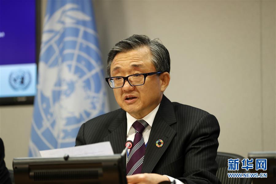 10月8日,在位于紐約的聯(lián)合國總部,聯(lián)合國負(fù)責(zé)經(jīng)濟(jì)和社會(huì)事務(wù)的副秘書長劉振民向記者介紹《2018年世界經(jīng)濟(jì)和社會(huì)概覽》。新華社記者李木子攝