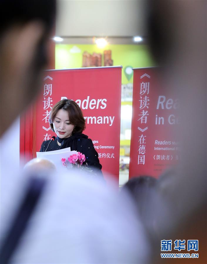 10月10日,在德國(guó)法蘭克福,中國(guó)電視節(jié)目主持人董卿在第70屆法蘭克福書展中國(guó)展區(qū)出席《朗讀者》朗讀會(huì)。