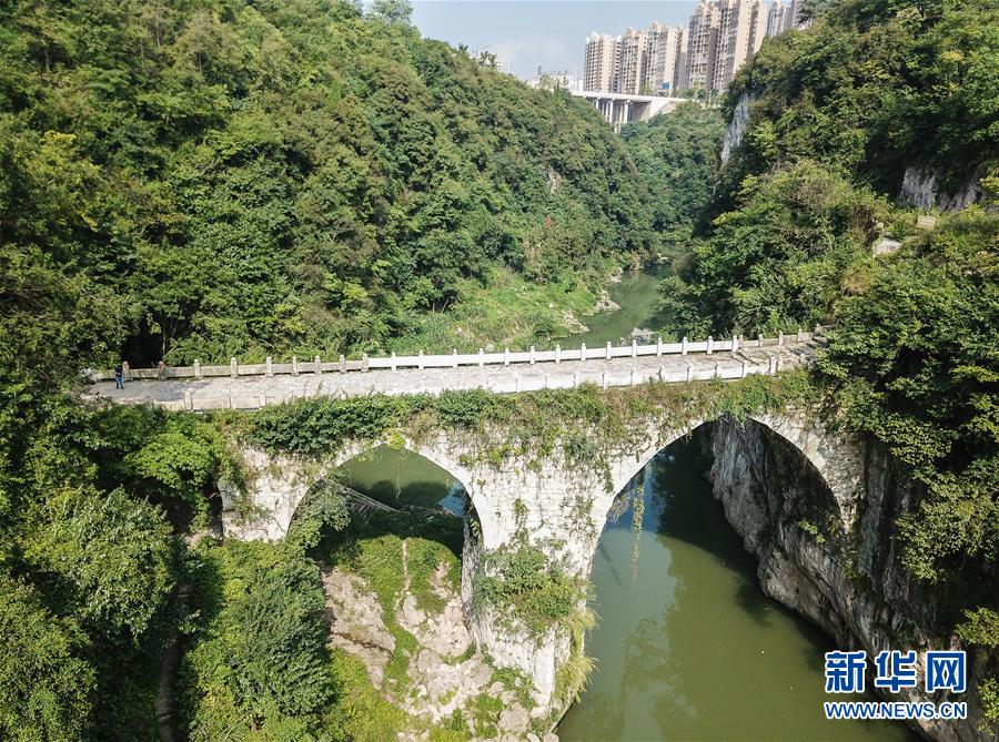 始建于清光緒年間的貴州省福泉市和善橋(8月21日無人機(jī)拍攝)。僅福泉市,修建于明清時期保存至今的石橋就有130座。新華社記者陶亮攝